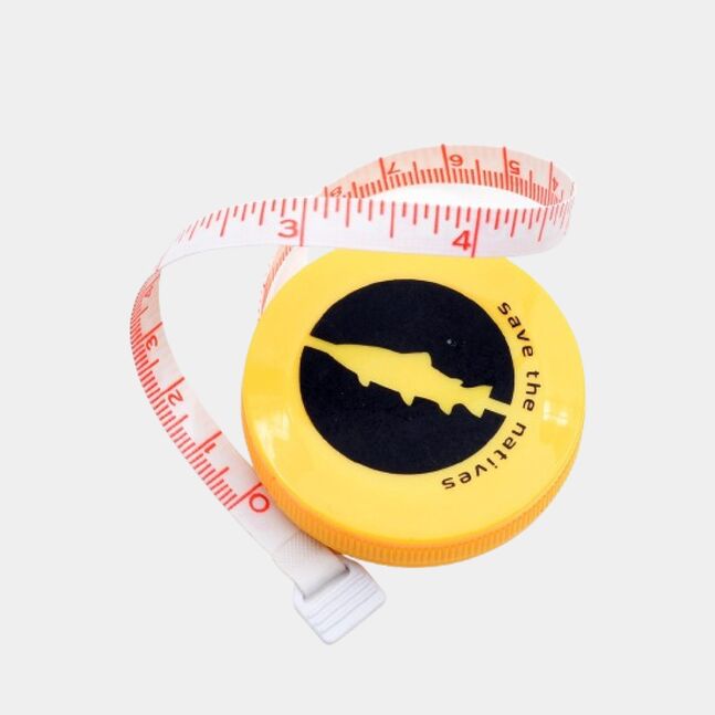 52mm in diameter and holds a 150cm/60” fabric ruler long enough for most species. Uses both metric & imperial units, one on the side to help you measure the length, no matter where on the globe you’re catching.