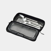 Designed in Japan, the Small Kitchen Mesh Case is a storage case for cutlery or kitchen tools. The nylon material is easy to clean and the mesh panels prevent moisture buildup. Features a 3-wall zipper and top handle for easy portability. Pair with the Cutting Board Set M or the Titanium Spork.